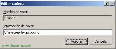 Y en “Información del valor” ponemos la ruta exacta hasta el script, Aceptamos,