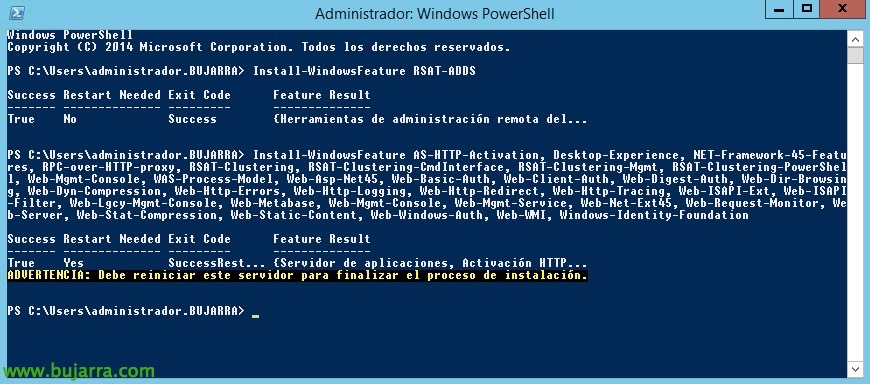 Continuamos con la preparación del AD, esto creará contenedores y otros objetos en nuestro DA, 跑: