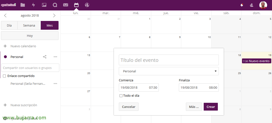 Al loguearnos como un usuario, podremos ver ya el icono del Calendario y el interfaz, que es súper amigable y sencillo de usar! Espero os parece interesante!