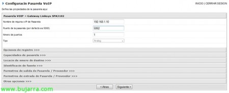 En esta ventana, deberemos indicar la IP que hemos otorgado al Gateway. Por defecto, marca el puerto 5060, aunque recomiendo que pongáis otro, como por ejemplo el 5062. El resto de opciones, las tenemos “restringidas” ya que hemos escogido una plantilla.