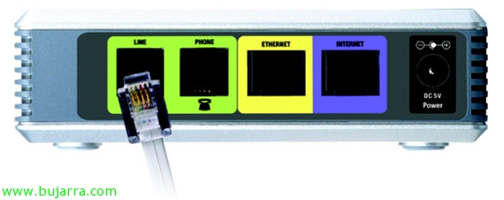Ha llegado la hora de instalar y configurar el Linksys SPA 3102 y lo primero de todo es saber donde enchufar todos los cables, nosotros, como solo lo vamos a usar como pasarela entre la VoIP y la PSTN, deberemos enchufar la línea de teléfono a LINE y la red interna en ETHERNET. PHONE, es para la FXO, un teléfono entrante o un FAX e INTERNET es para el caso que queramos configura el Gateway como router también.