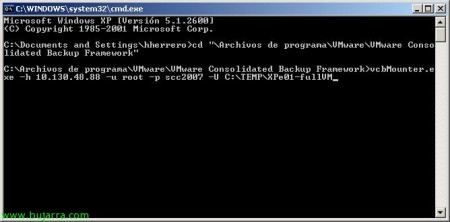 Vemos que donde hemos indicado al fichero de configuración de VCB nos está montando la máquina virtual que le indicamos.
