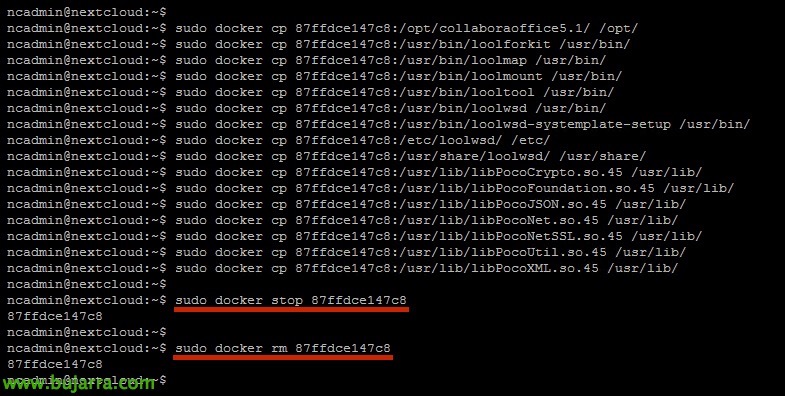 Copiamos los siguientes directorios y ficheros necesarios, Posteriormente pararemos en contenedor recién descargado y lo borramos, ya no será necesario más.