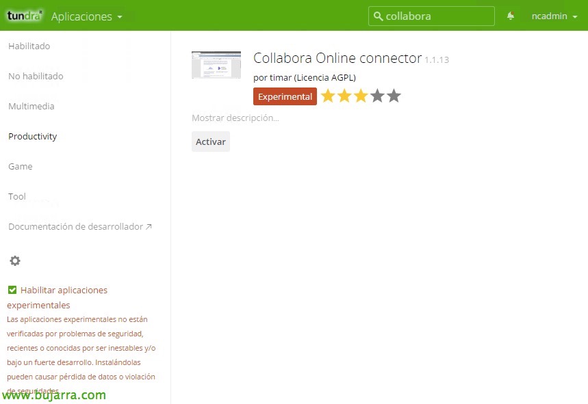 悪くありません, 次に、Collabora Online Connectorアプリをインストールします, Nextcloudの管理者としてログインしたら, アプリ内.