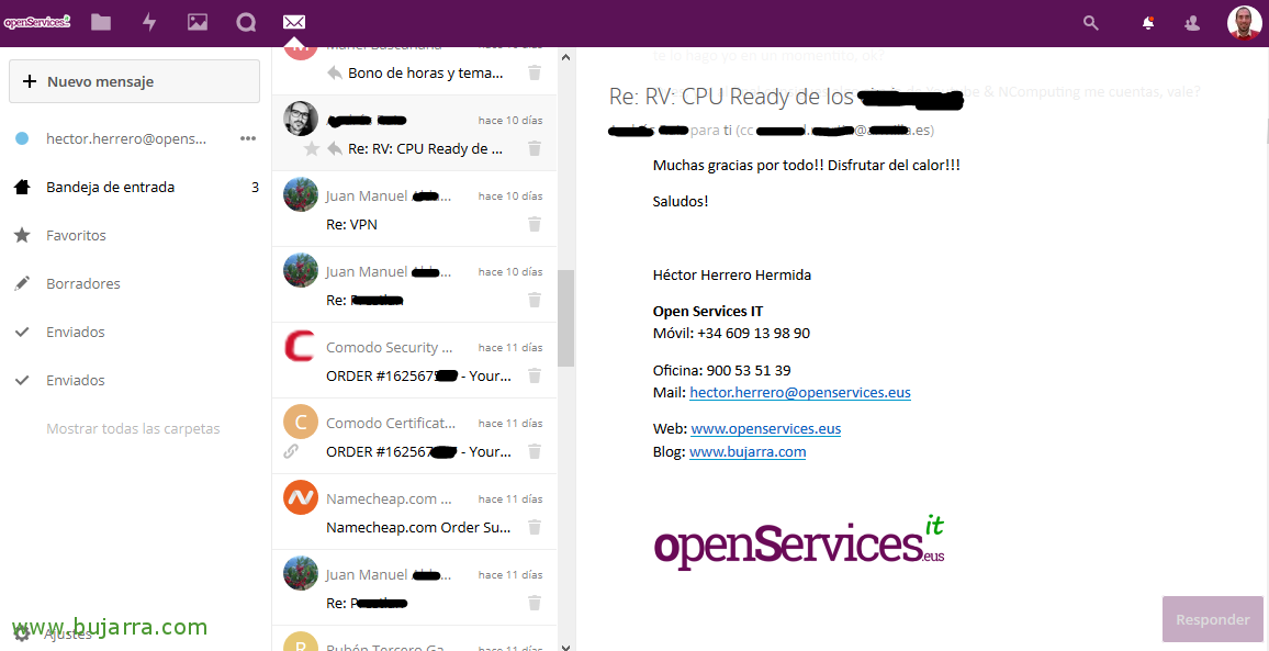 E questo è tutto! Dopo aver impostato l'account vedremo quella magnifica webmail! Sarà super semplice e intuitivo per i nostri utenti! Stiamo vedendo come a poco a poco il nostro Nextcloud acquisisca funzioni più interessanti per la nostra organizzazione!