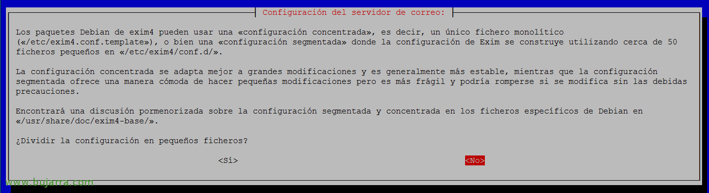 表明 “不” 将 EXIM4 配置保存在单个配置文件中, 通常它会是 /etc/exim4.conf.