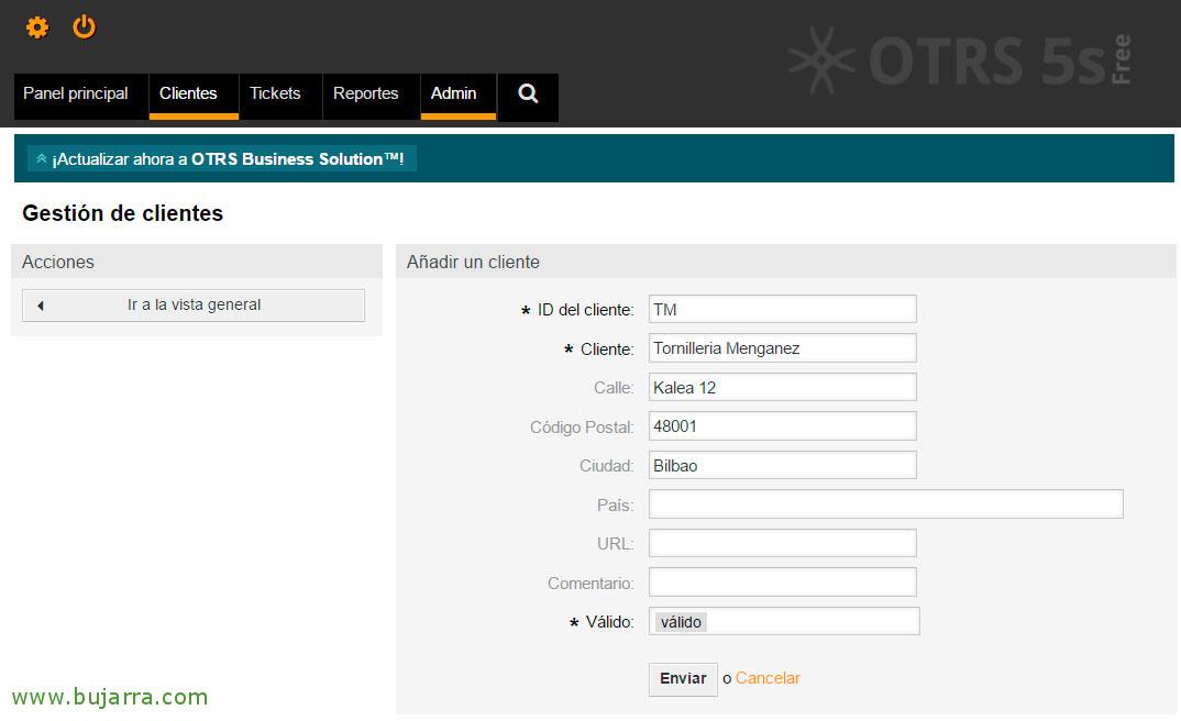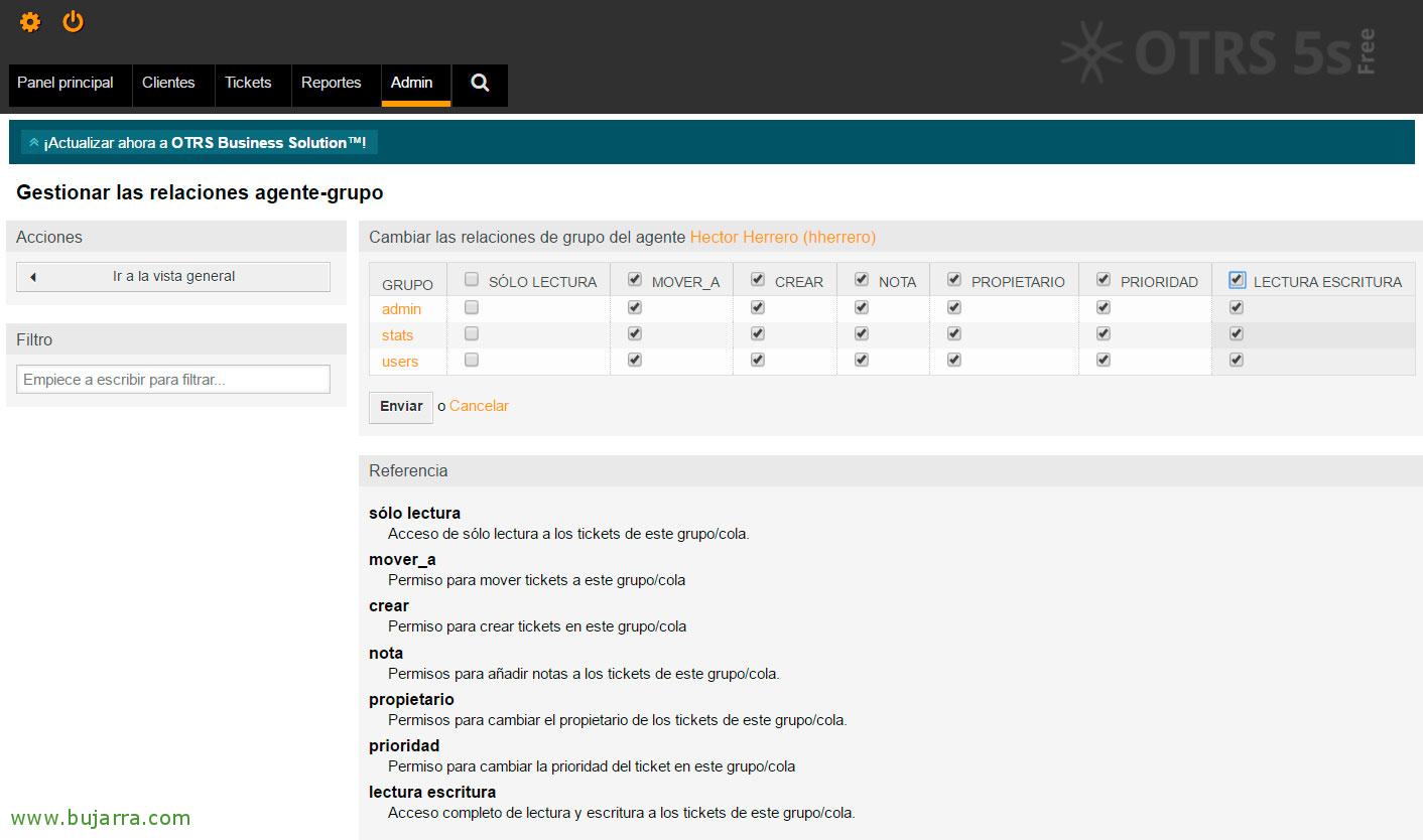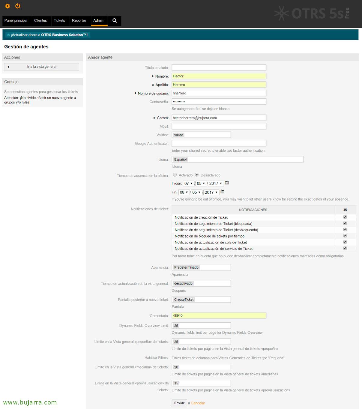 我们将以一个非常简单的例子为基础, 一家为客户公司提供技术服务的公司, 这些称为 “客户端”, 而管理事件的人将是 “代理人”. 不错, 这些客户将创建不同类型和优先级的事件, 通常来自一个非常简单的 Web 门户 (请注意,还有一些应用程序可与 iPhon 的 Android 或 iOS 移动设备一起使用 / iPad版). 我们作为代理将跟进并解决事件, 在月底,我们将能够获得一份包含我们已解决的所有事件的列表, 向这些客户收费或其他! 我们还将启用, 当客户向我们指定的电子邮件地址发送电子邮件时, 将自动为事件创建一个票证, 但为此,我们首先必须启用从 OTRS 服务器发送/接收邮件的功能, 除了已经说过的, 我们将定制答案,每次开票时都会收到您, 有一个注释,或者我们直接将其关闭为已解决; 我们还可以进行一次小型调查,以便他们评估服务质量或其他. 我们走吧??? 含牛轧糖!!!!