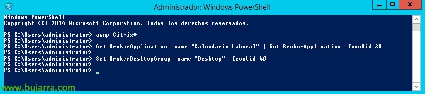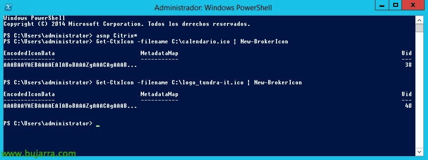 Pour créer une icône dans notre infrastructure Citrix XenApp ou XenDesktop 7, 7.1, 7.5, 7.6, 7.7, 7.8, 7.9 ou 7.11 nous devrons exécuter la commande PowerShell suivante pour l’importer dans la batterie de serveurs, d’abord si nous n’avons pas les modules Citrix chargés, Eh bien, nous les portons! Nous allons regarder l’identifiant qui attribue à chaque icône, puis l’attribuer.
