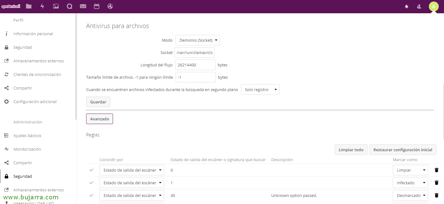 Protección de antivirus para nuestros datos de Nextcloud