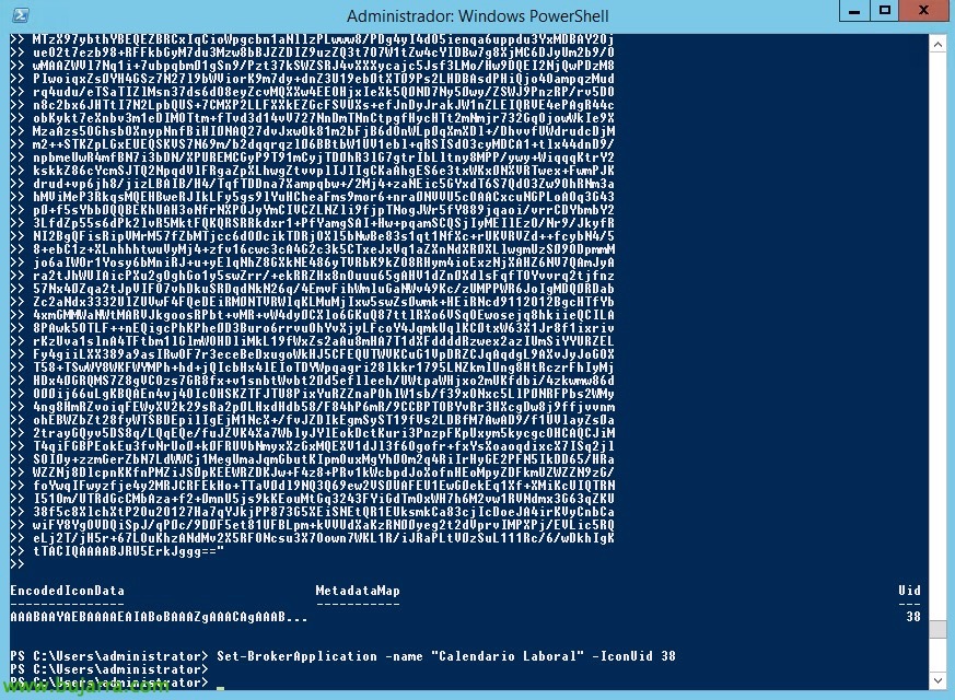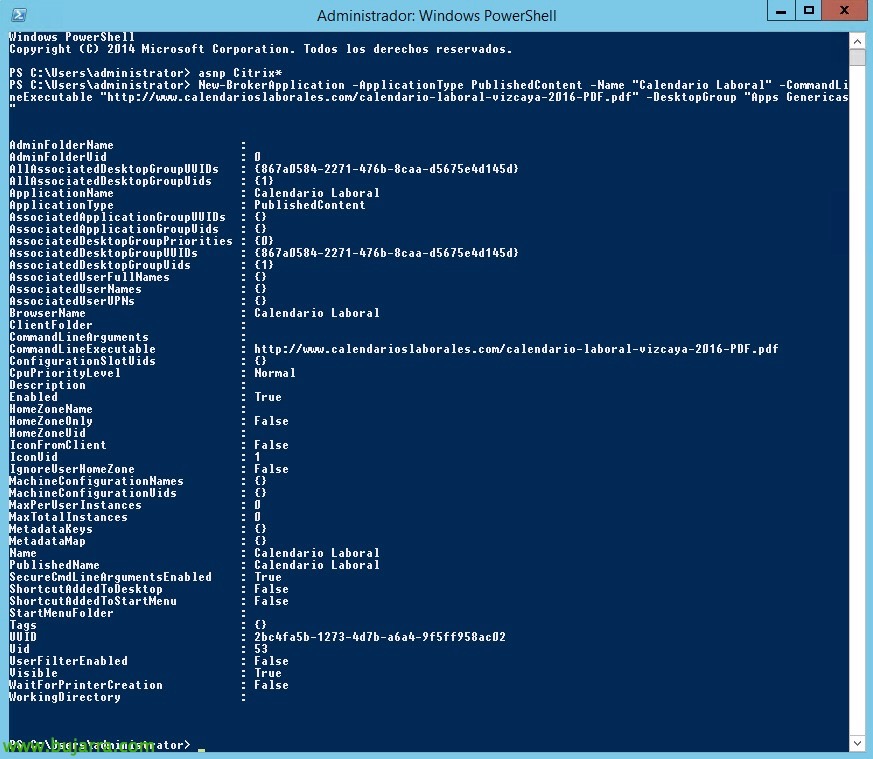 [Código-fonte]New-BrokerApplication -Name NOMBRE_DOCUMENTO -PublishedName "NOMBRE DOCUMENTO" -ApplicationType PublishedContent -CommandLineExecutable \\PATH\CARPETA\FICHERO.DOC -DesktopGroup "Nombre Grupo"[/Código-fonte]